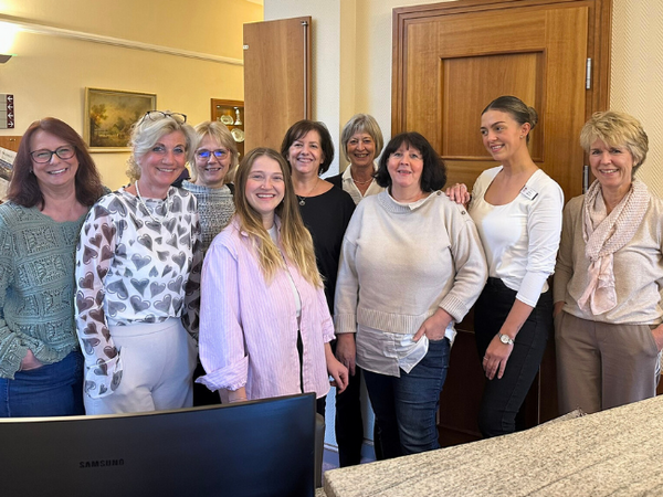 Neuen Besuchern hilft sie sich im Haus zu orientieren. Sie erklärt routiniert den Weg zum Speisesaal, zur Geschäftsleitung, zur Wohngruppe, zum Schwimmbad, zum Lesezimmer, zum Park… Anrufende – und die sind mindestens genauso zahlreich wie die Besucher vor Ort – werden natürlich genauso geduldig informiert, weitergeleitet und auch, wenn das Anliegen nicht an die Rezeption gehört, respektvoll behandelt.